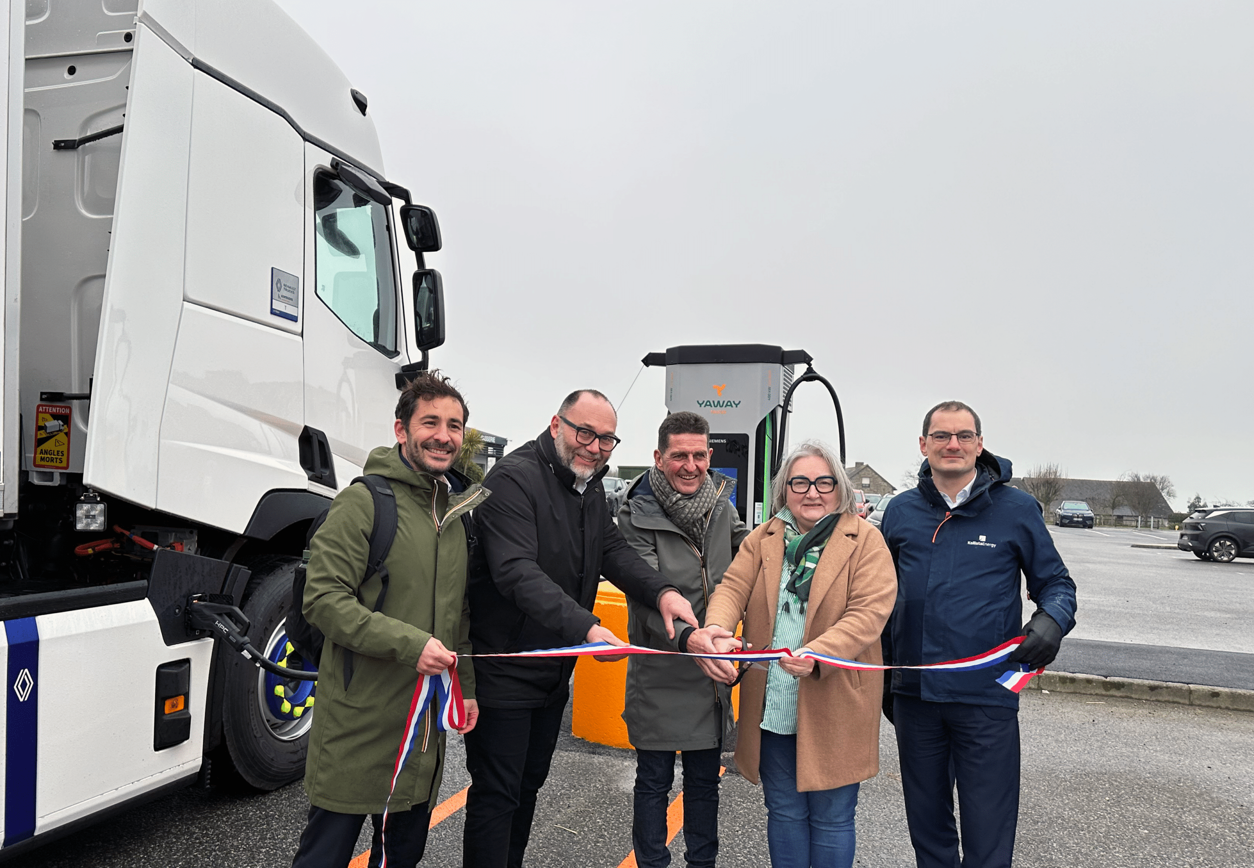 À Étrelles, entre Rennes et Laval et à proximité de Vitré, YAWAY a mis en service sa 1re station dédiée aux Poids Lourds le jeudi 29 janvier 2026. La station se situe sur le parking d’un relais routier. Pour commencer, elle propose 4 points de charge pouvant fournir jusqu’à 400 kW et des places adaptées pour accueillir tout type de gabarit de véhicule poids lourd articulé ou non. Une tarification spécifique aux Poids Lourds et aux professionnels est aussi proposée par YAWAY.